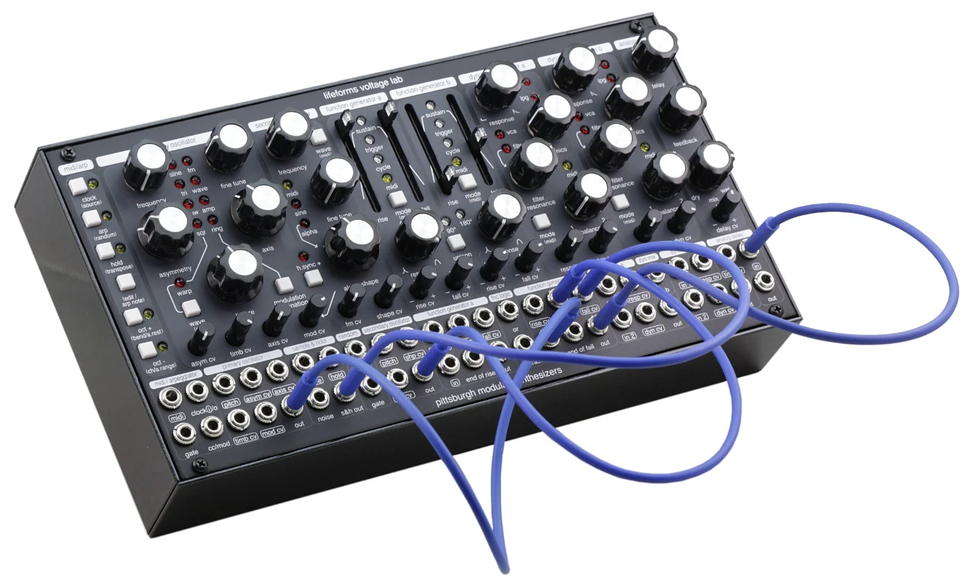 The Lifeforms Voltage Lab Blackbox is a complete, standalone desktop format modular synthesizer featuring the Voltage Lab synthesizer voice. A full compliment of experimental analog tools created for deep sonic research stuffed into a portable, powered steel enclosure. The Voltage Lab Blackbox is a different type of analog synthesizer, where every function of the instrument has been influenced by the behaviors and systems of the natural world. Wildly experimental and extremely deep, the Lifeforms Voltage Lab Blackbox is a sonic playground created to explore the natural systems and lesser known fringes of analog synthesis.